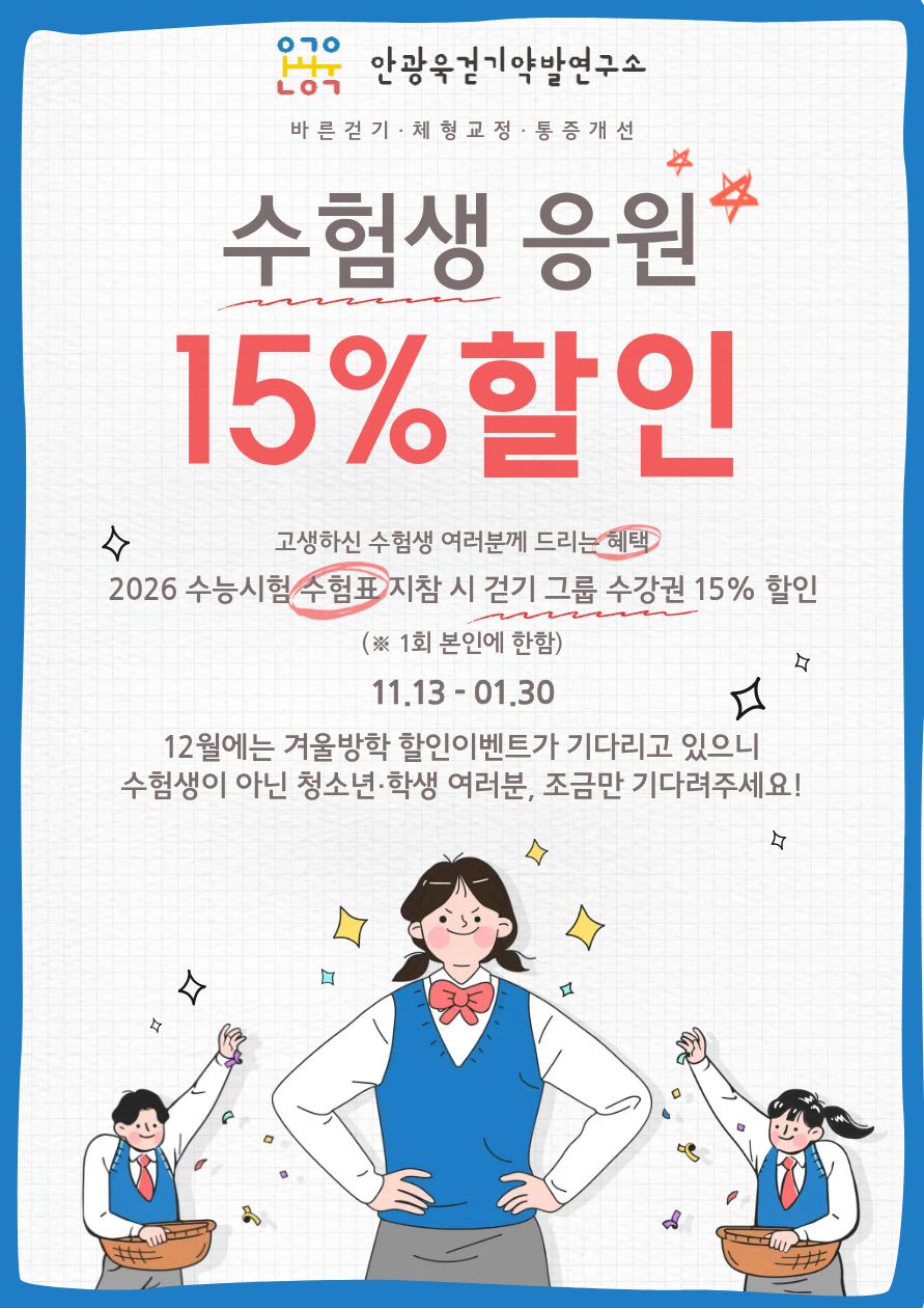 ¼ö´ÉÀÌ ³¡³ ÀÌ ½Ã±â, ÀúÈñ ¾È±¤¿í°È±â¾à¹ß¿¬±¸¼Ò¿¡¼ ¸¶·ÃÇÑ ÇÒÀÎ À̺¥Æ®·Î ¹Ù¸£°Ô °È±â ¿îµ¿°ú üÇü ±³Á¤ ¿îµ¿À» ÇÏ¸é¼ °Ç°ÇÑ Ä·ÆÛ½º »ýȰ, ´õ ³ª¾Æ°¡¼´Â °Ç°ÇÑ ¹Ì·¡¸¦ ÁغñÇÏ´Â °ÍÀº ¾î¶³±î¿ä?