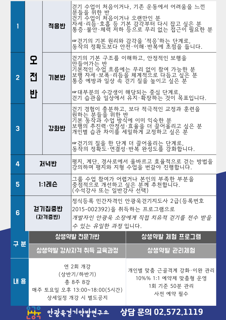 ¾È±¤¿í ¼ÒÀå´Ô²²¼ ¹Ù¸£°Ô °È±âÀÇ ÈûÀ» ¾Ë¸®°íÀÚ °È±â ±³À°¿¡ Àü³äÇϽÅÁö ¾î´Àµ¡ 30³âÀÌ Èǽ ³Ñ¾ú½À´Ï´Ù. ±×·³¿¡µµ °È±â¿¡ ½Ã°£°ú µ·À» ÅõÀÚÇÏ¿© ¹è¿ì°íÀÚ ÇÑ´Ù´Â °Í¿¡ ´ëÇÑ ÀDZ¸½ÉÀÌ ¿©ÀüÈ÷ ¸¹Àº ºÐµé²² ÀÖÀ» °Ì´Ï´Ù.