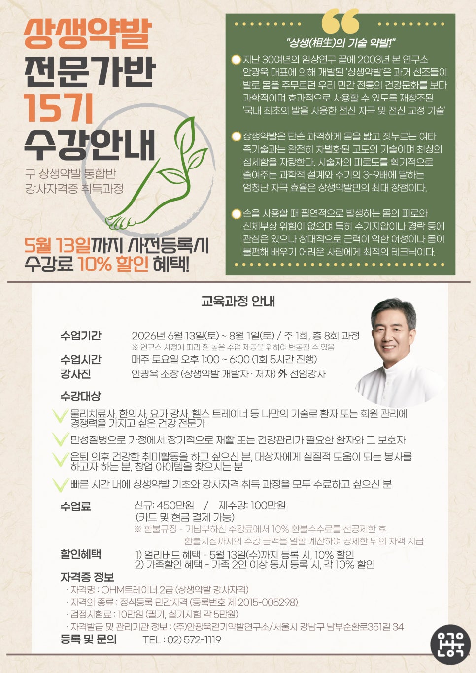ÀÌ·± °Ç°°ü¸® ±â¼ú¿¡ °ü½É ÀÖ´Â ºÐµéÀ» À§ÇÏ¿©, ÀúÈñ ¾È±¤¿í°È±â¾à¹ß¿¬±¸¼Ò¿¡¼´Â 26³âµµ 6¿ù¿¡ »ó»ý¾à¹ß Àü¹®°¡¹Ý 15±â°¡ °³°ÇÕ´Ï´Ù.